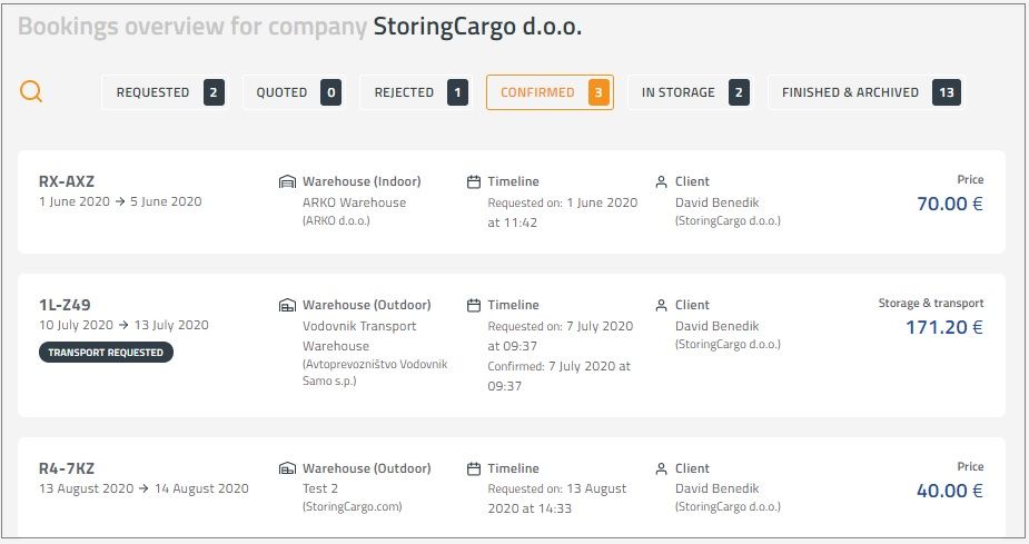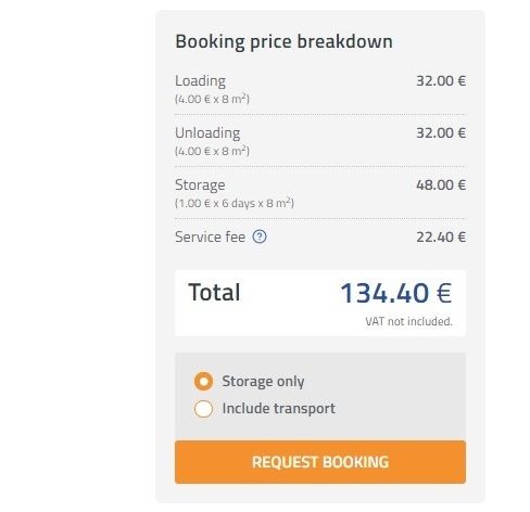 After you find what you are looking for, you will have to add some more details. Again write down the dates of storing and quantity, but dimensions, height, and weight are important as well so don’t miss that. If you want to include transport in the booking, just choose it before you finish with the request.