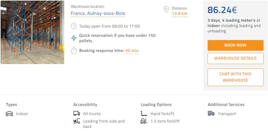 - France: 3 days for 4 loading meter's at Indoor warehouse