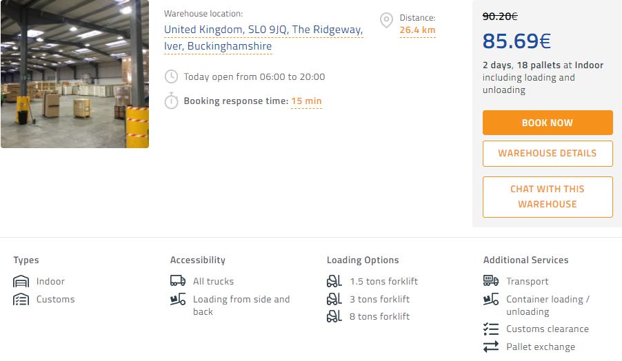 - United Kingdom: 2days for 18PAL in an Indoor warehouse