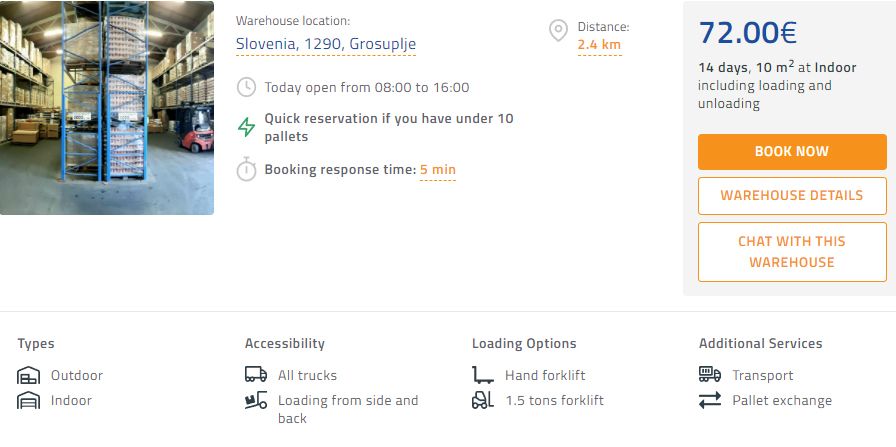 Sam koncept najem skladišča podoben spletnim stranem, ki omogočajo najem apartmaja ( Airbnb, Booking.com)