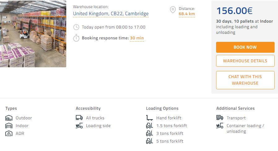 📍 UNITED KINGDOM, Cambridge - This warehouse is the cheapest one. You would pay only 156,00€ for 10PAL, for 30 days. That's an amazing price, right?😉