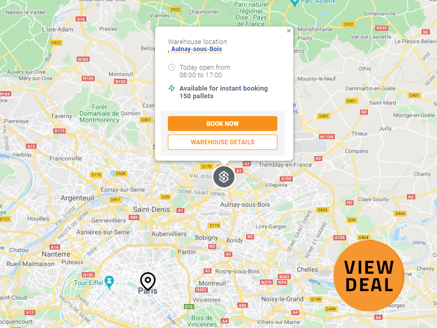 Check warehousing providers near Paris (Entreposage Paris) and their prices for storing a few pallets for a few days. Renting a warehouse was never so easy!