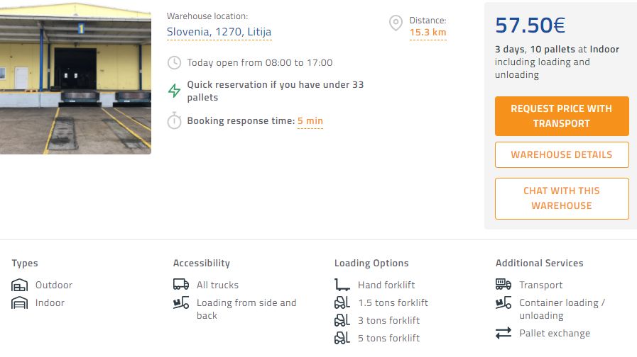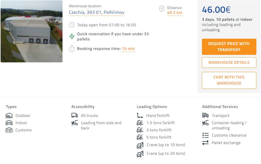 👉If the warehouse has an Instant booking option, you will receive reservation confirmation immediately. This is only available for EURO pallets.