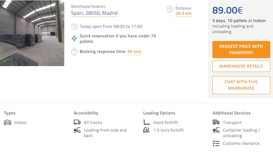 When you run out of storage at the last minute on Friday, thousands of miles from home and you don’t know what to do next? We have a solution for you! Let me present you with a website where you can book a perfect warehouse. They can store, unload, load, reload, transship, repack, pack, pick up and distribute (transport and fulfillment) services additional services, or even transport of cargo at any time.