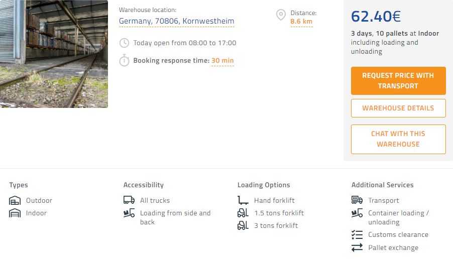 It is an Airbnb / Booking.com concept that allows warehouse owners to rent out their capacities and allows warehouse service seekers to quickly and easily book service online.